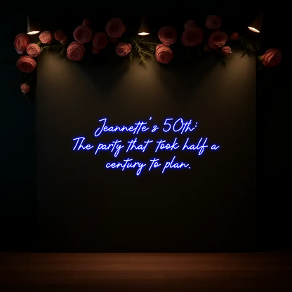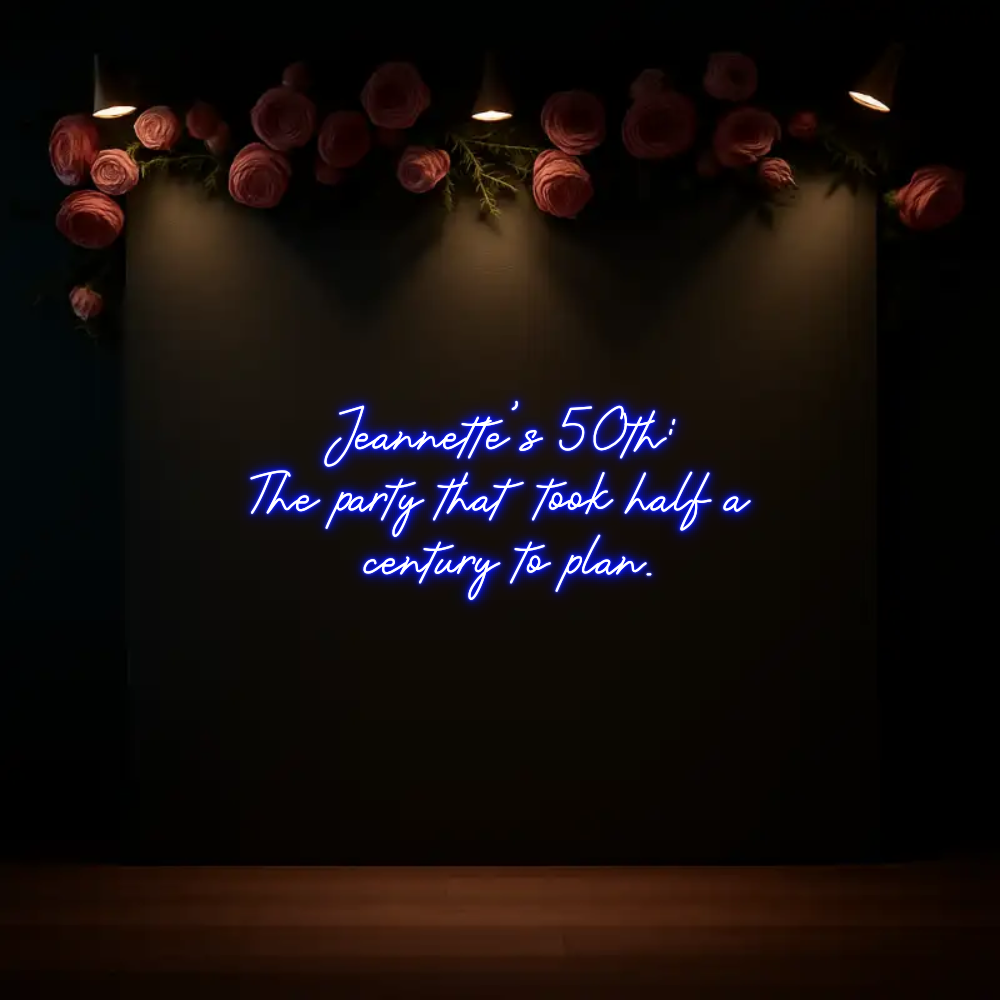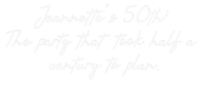 Text: Jeannette's 50th: The party that took half a century to plan.
