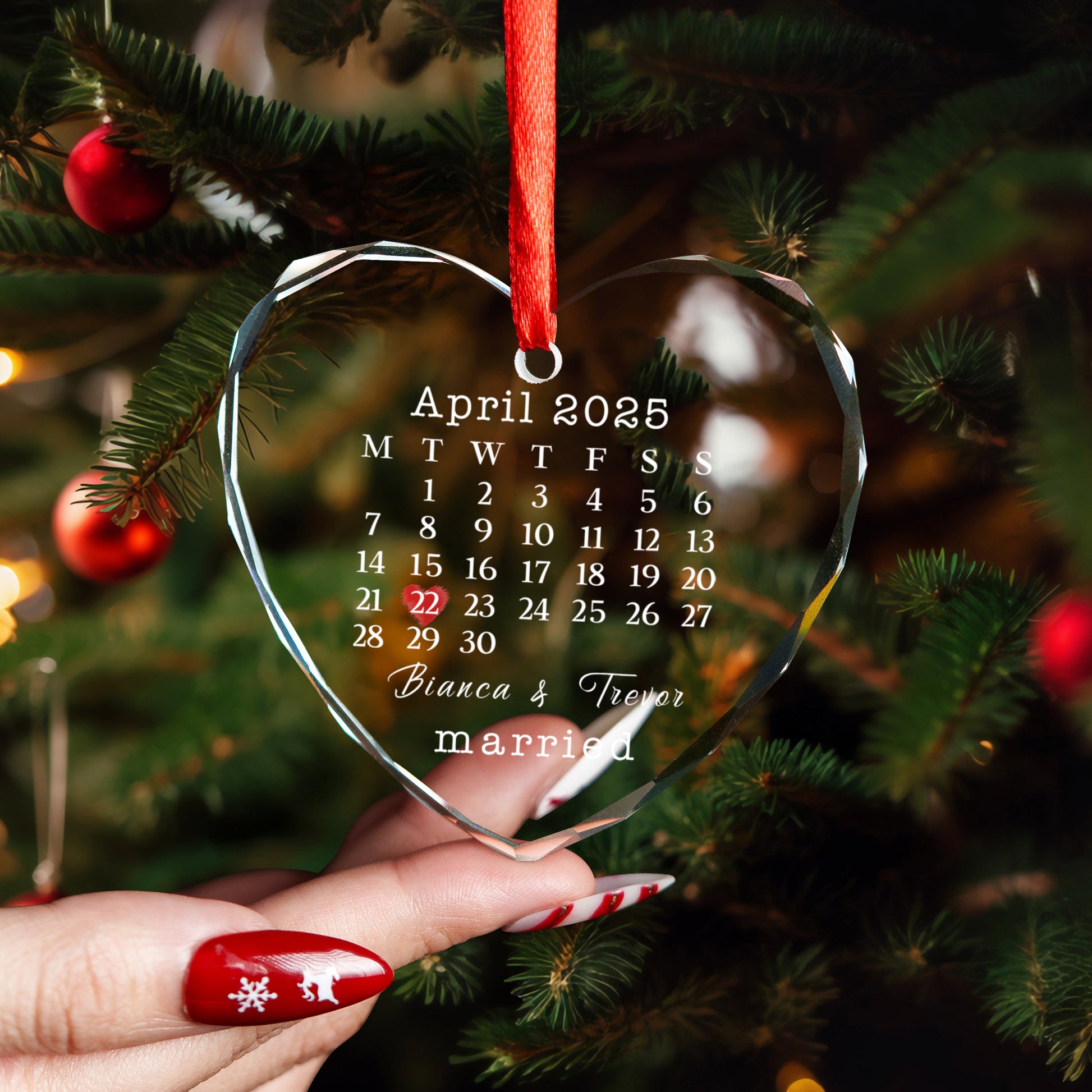 Married Ornament, Wedding Date Ornament, Crystal Ornaments