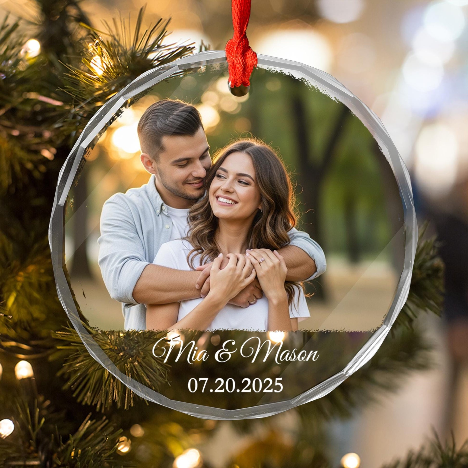 Personalized Couple Photo Ornament, Custom Glass Ornament