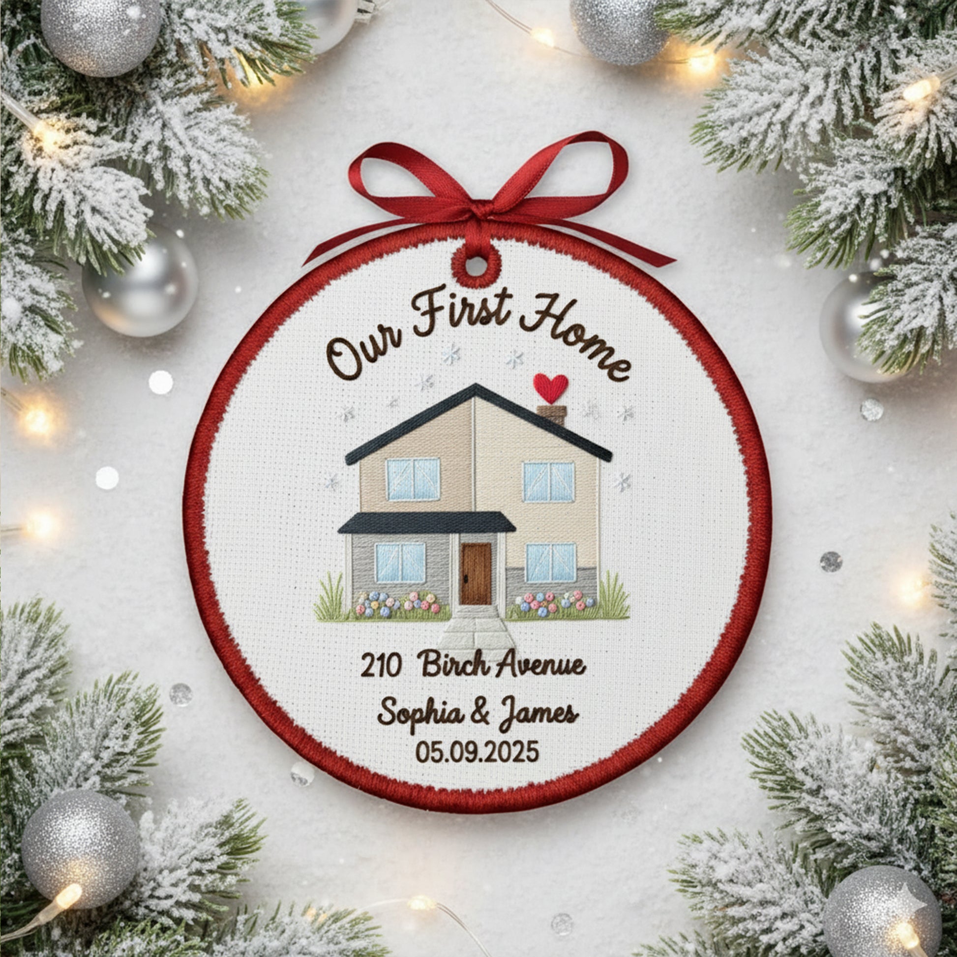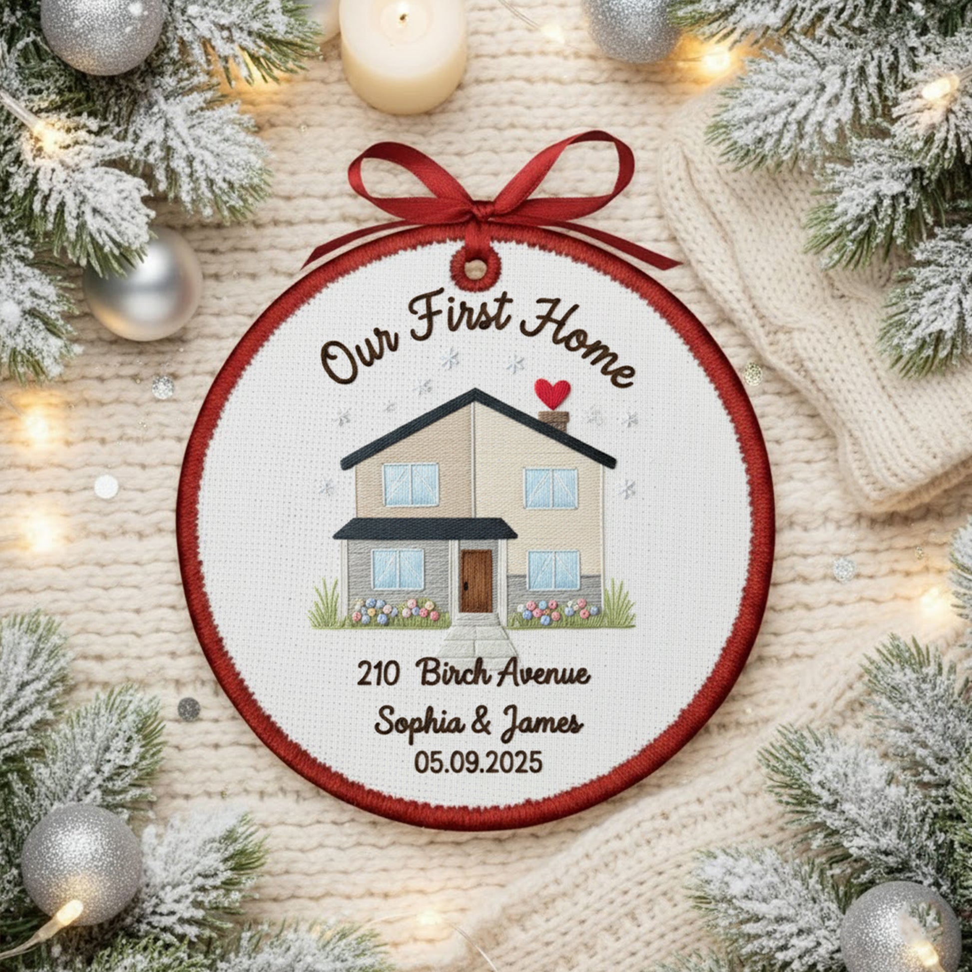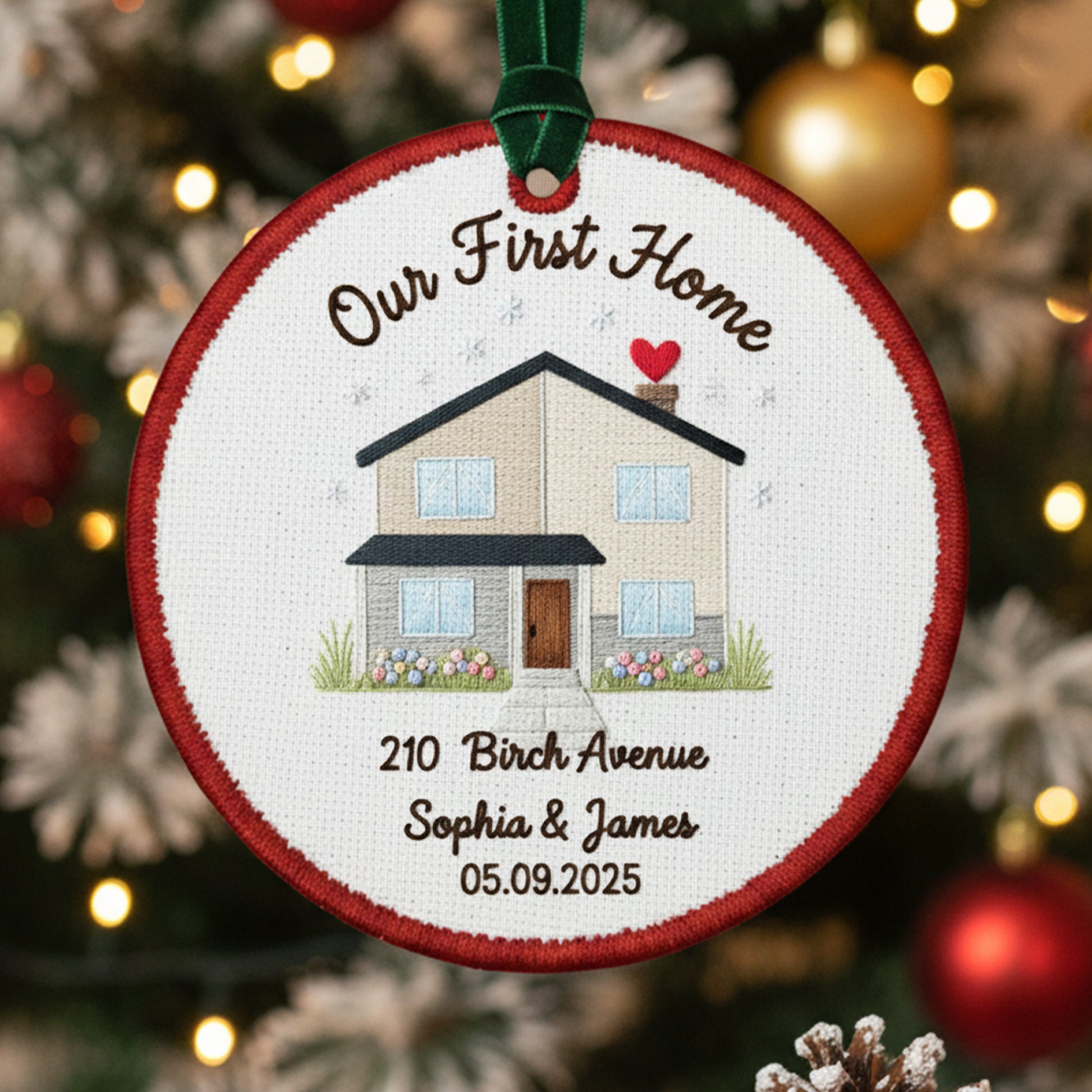 Personalized Our First Home Embroidered Canvas Ornament 2025, New Home Gift for Couple, Custom Housewarming Keepsake Decor, First Home Gift